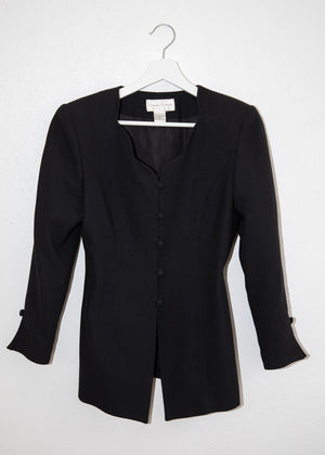 Vintage Scalloped-Neck Black Blazer